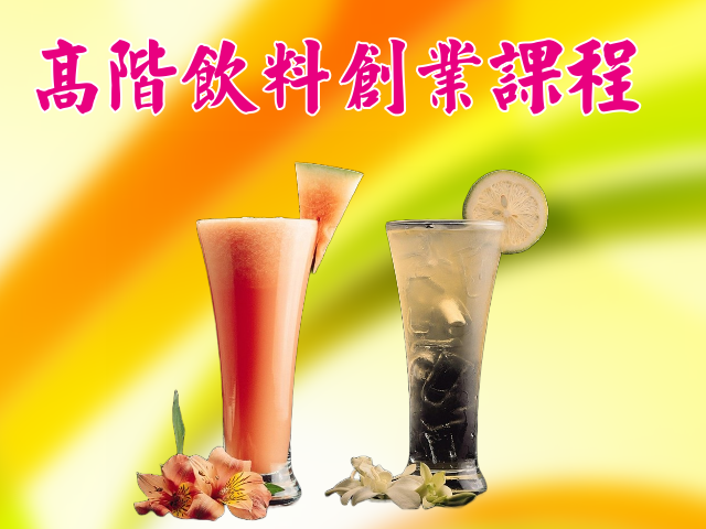 輔導想從事飲料事業之創業者,提供完整深入技術教學課程,如:飲料、茶飲、珍珠奶茶、泡沫紅茶、奶蓋、水果茶、現打果汁、漸層飲料、紅茶冰、咖啡、調酒,品項可達500項以上至無限飲品