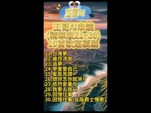 #王哥Ai 歌曲串燒(10首精華版21~30)21.台灣夢22.歲月流逝23.追夢24.學會愛自己25.星辰見證26.想你念你就哭了27.依然愛著你28.我要去旅行29回憶往事30回憶往事(女版爵士)